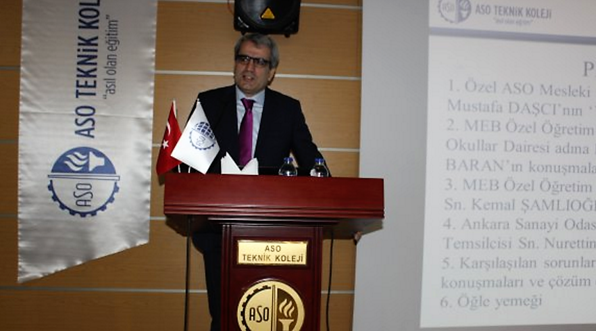 Organize Sanayi Bölgesi içinde ve dışında açılan Özel Mesleki ve Teknik Anadolu Liseleri toplantısı 10.03.2017 Cuma günü Özel Ankara Sanayi Odası Mesleki ve Teknik Anadolu Lisesi Toplantı salonunda gerçekleştirildi. Özel Öğretim Kurumları Genel Müdürlüğü Okullar Dairesi Başkanı Mehmet BARAN´ın başkanlığında yapılan toplantıya ASO Başkanı Nurettin ÖZDEBİR, Mersin Tarsus Organize Sanayi Müdürü Sabri TEKLİ ve OSB içinde ve dışında faaliyette bulunan Özel Mesleki ve Teknik Anadolu Lisesi temsilcileri katıldı.